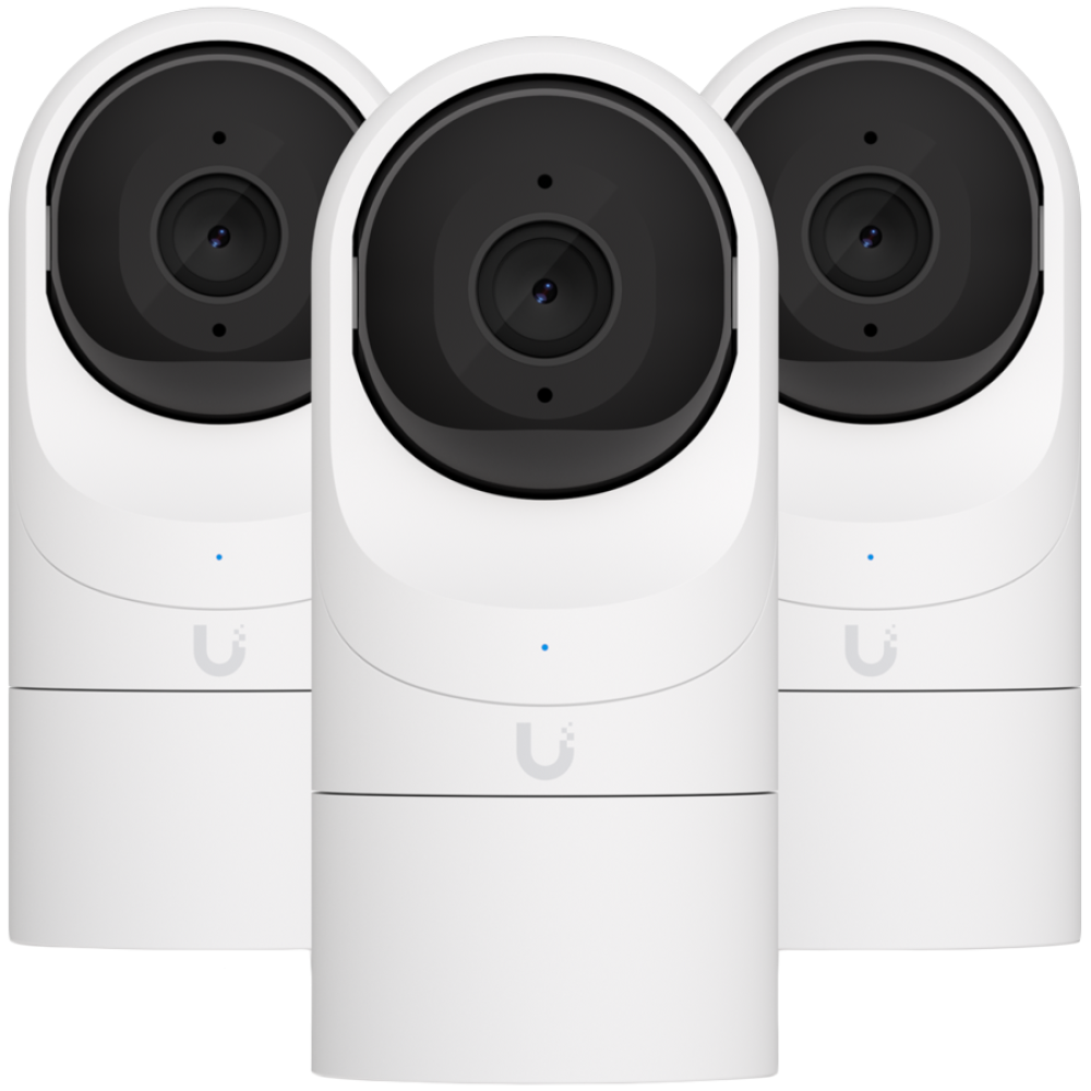 UBIQUITI G3 Flex 3-pack; FHD (2MP) video resolution; Versatile table or ceiling mounting; 6 m (20 ft) IR night vision; Connect and power using PoE; Record audio with an integrated microphone; Weather-resistant (outdoor covered).