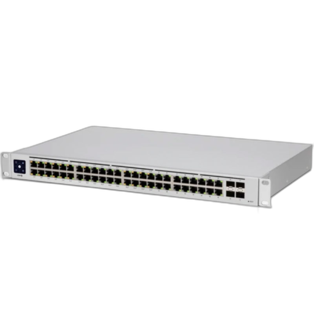 USW-48-PoE je nastavljivo stikalo Gigabit Layer 2 z 48. Gigabit Ethernet priključki, vključno s 32. samodejnimi zaznavami 802,3at PoE + in 4 SFP vrati. Omogoča Gigabit PoE povezave do vaših RJ45 Ethernet naprav in Gigabitne optične povezave do vašega omrežja podjetja. USW-48-PoE ima 1,3-palčni LCM na dotik za zagotavljanje stanja.