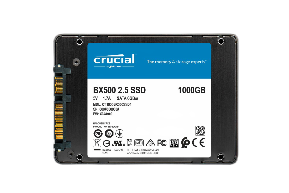 SSD 1TB 2.5" SATA3 3D TLC, 7mm, CRUCIAL BX500 (CT1000BX500SSD1)