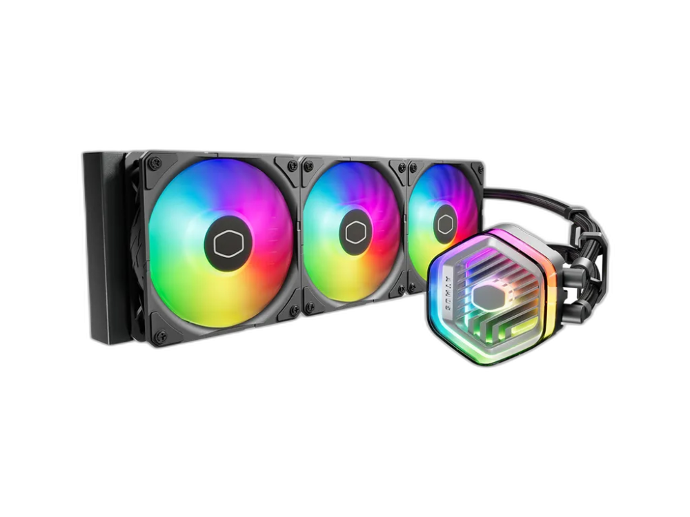 Na hladilnik so nameščeni trije SickleFlow 120 mm ARGB Gen2 ventilatorji, ki poskrbijo za dober pretok zraka. Osvetlitev je enostavno prilagdoditi z MasterCTRL in MasterPlus aplikacijama.