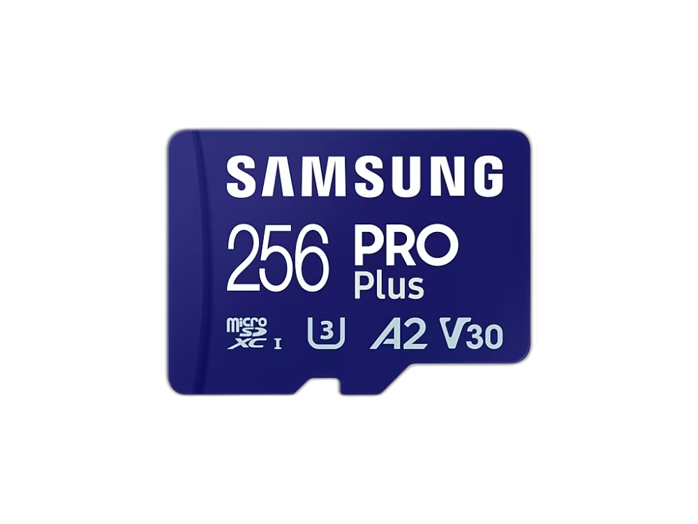 Spominska kartica Samsung PRO Plus micro SDXC, 256GB, 180MB/s, U3, V30, A2, UHS-I, z SD adapterjem