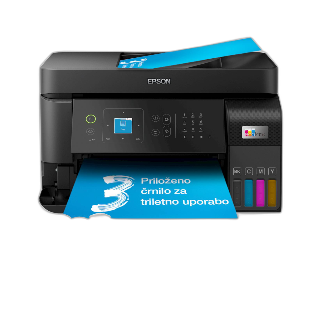 TISKAJTE BREZ KARTUŠ! Uživajte v brezžičnem tiskanju in izjemno nizkih stroških tiskanja na stran z večopravilno napravo Epson EcoTank L5590. Posode s črnilom z izjemno visoko kapaciteto omogočajo polnjenje brez packanja, posebna oblika stekleničk pa zagotavlja polnjenje posod s pravo barvo. Tiskalnik je odlična izbira za domačo uporabo, saj omogoča šolarjem, dijakom in študentom brezskrbno tiskanje. Tiskalnik lahko z lahkoto upravljate tudi z novo mobilno aplikacijo Epson Smart Panel. S tehnologijo tiskanja brez toplote Micro Piezo Heat-Free lahko uživate v manjši porabi energije in manjši potrebi po nadomestnih delih. Tiskalna glava je vnaprej nameščena, zato je namestitev tiskalnika nezahtevna. Naprava je primerna tudi za manjše pisarne.
