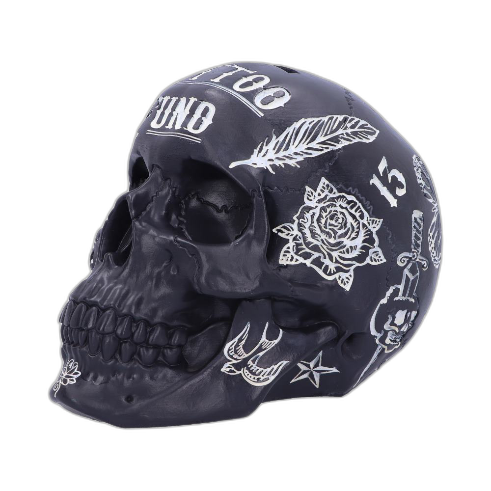 EAN: 801269137991Tattoo Fund (Črna): Ta črna lobanja–hranilnik je okrašena z različnimi tatu slogi, vključno s tradicionalnimi, tribal in ilustrativnimi motivi, vsi pa so pobarvani v belo in ustvarjajo močan kontrast s črnim ozadjem lobanje. Ne glede na to, ali varčujete za nov tatu ali pa zgolj za »hude čase«, je ta hranilnik v obliki lobanje popoln prostor za vaše prihranke. Ulita je iz najboljše smole in skrbno ročno poslikana, zato bo ta kos odličen dodatek vsakemu alternativnemu domu.