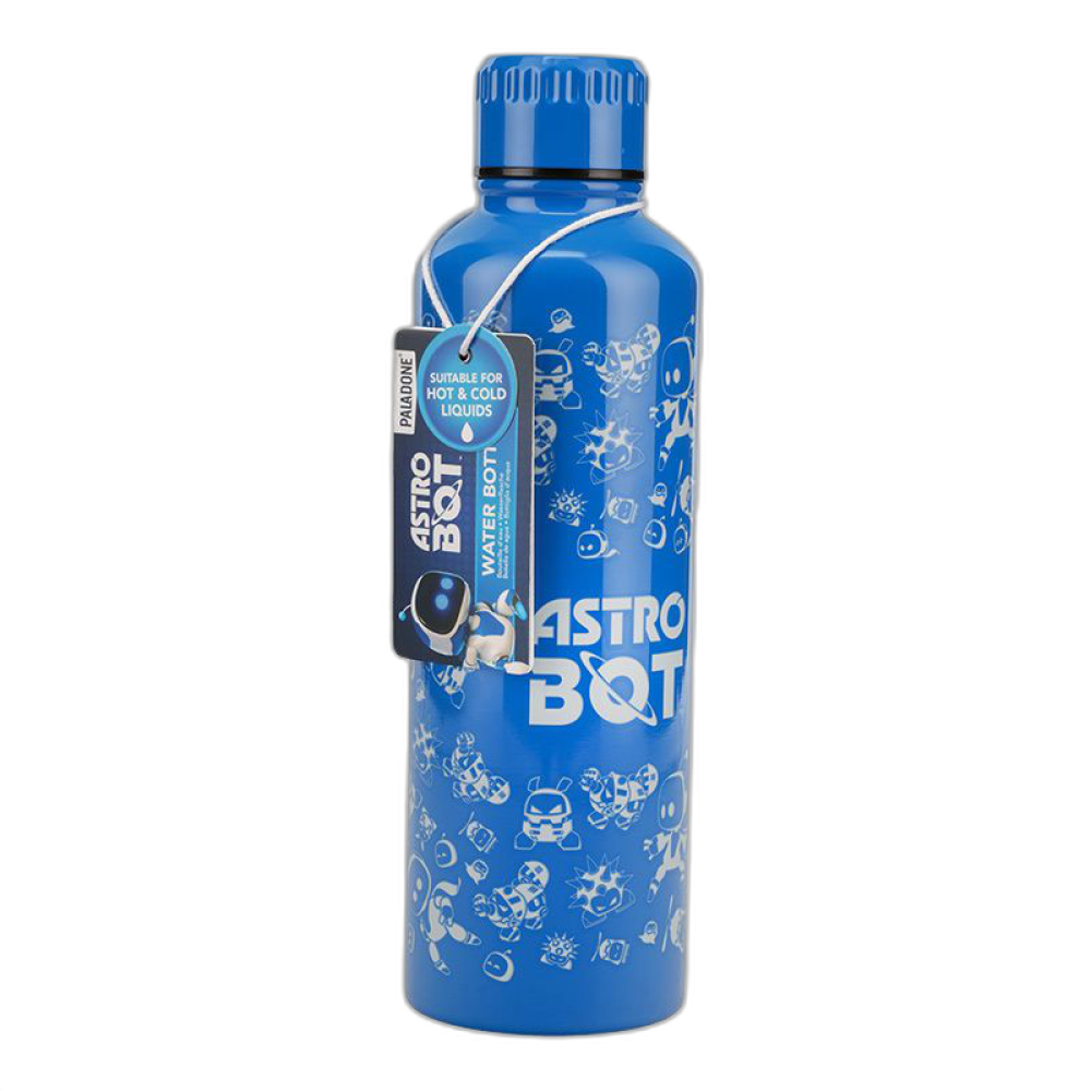 Ta kovinska steklenica Astro Bot je odlično darilo za vse ljubitelje iger.