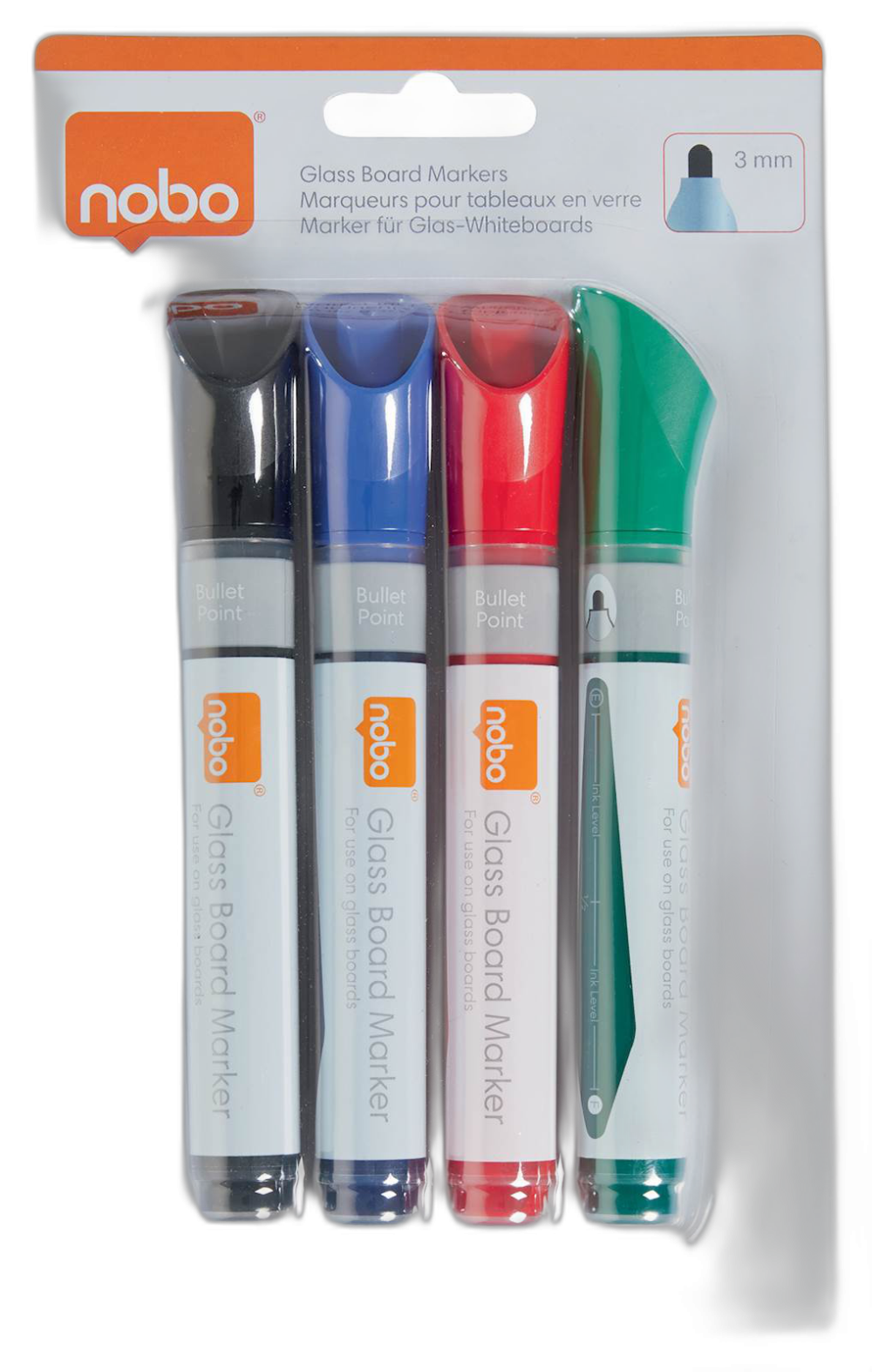 Ti vsakodnevni ne-permanentni markerji za belo tablo so optimizirani za uporabo na steklenih belih tablah z odličnim nanosom črnila. Hitro se sušijo in jih je mogoče enostavno odstraniti s suho krpo. Ta tekoča pisala imajo tudi priročno okence za pregled nad nivojem črnila, tako da vam ga nikoli ne zmanjka v ključnem trenutku. Na voljo so v različnih barvah, ki zadostijo vsem vašim potrebam pri predstavitvah; idealni za šole, pisarne in domačo uporabo. Paket vsebuje 4 pisala za suho brisanje s konico 3 mm za enakomerne, izrazite in gladke linije. Optimalno delovanje na steklenih tablah Nobo.