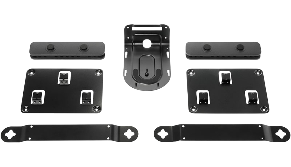 Komplet nosilcev Logitech Rally Mounting Kit zagotavlja varno in stabilno namestitev komponent konferenčnega sistema Logitech Rally.