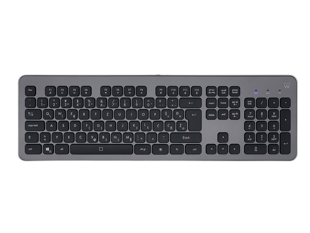 Tanka zasnova s škarjastimi stikali, 12 multimedijskimi tipkami in tipko Windows Lock.