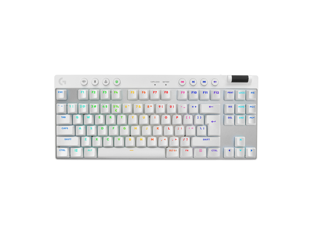 PRO X TKL tipkovnica je oblikovana in zasnovana skupaj s profesionalnimi igralci. Vsebuje programabilne tipke, RGB osvetlitev z LIGHTSYNC funkcijo, medijske tipke in poseben valj za glasnost.